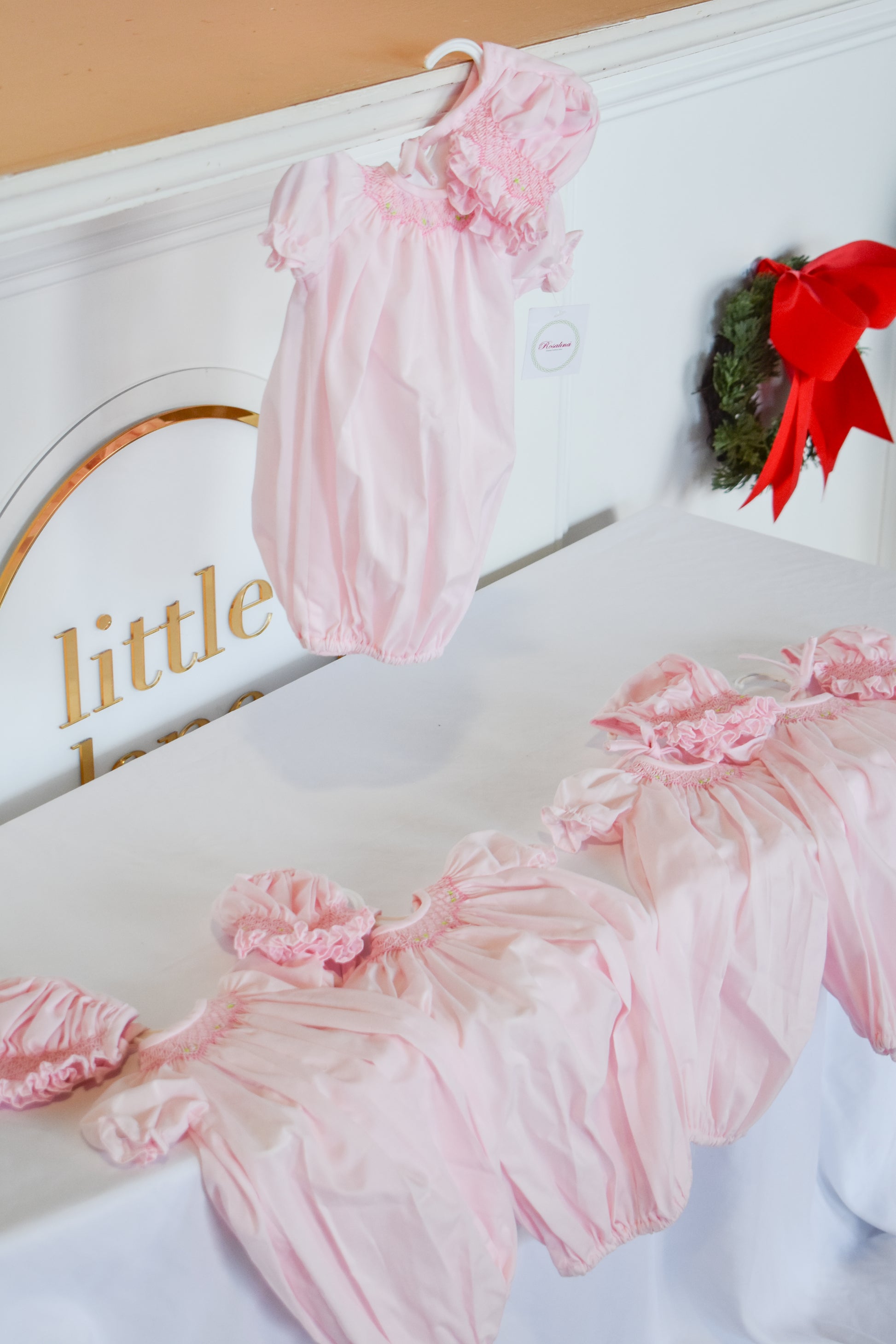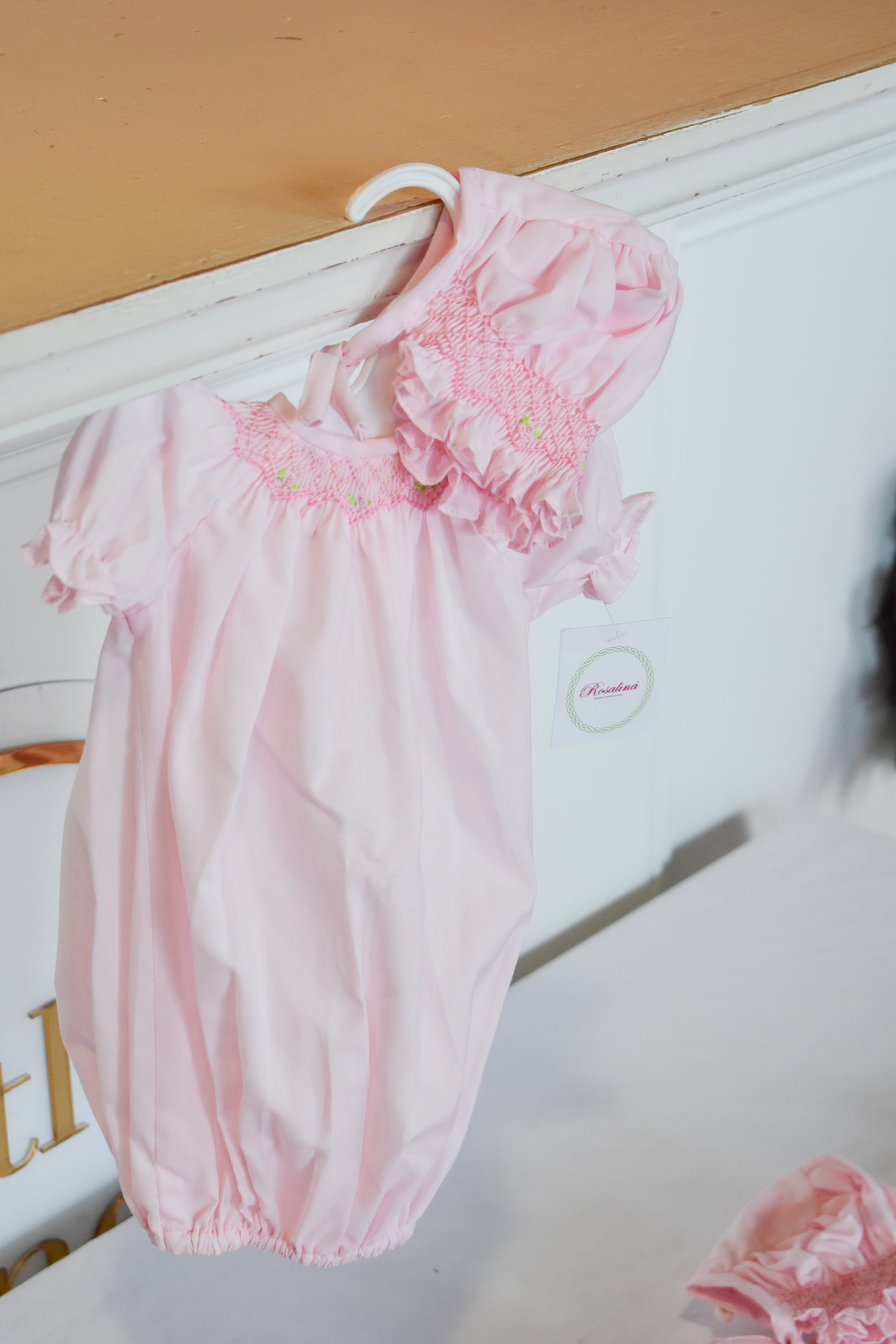 Dress your little one's beloved doll in this charming Rosalina smocked gown and bonnet set. Featuring delicate smocking details and a soft pink palette, this two-piece ensemble brings timeless elegance to playtime. The versatile sizing fits dolls 10 to 15 inches tall, making it perfect for a variety of beloved companions. Ideal for imaginative play, special occasions, or as a thoughtful gift for doll enthusiasts of all ages.
