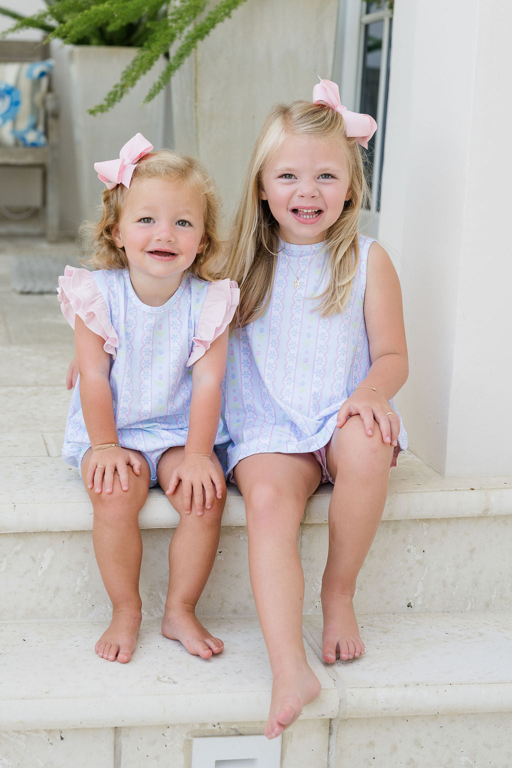 Adorable bubble knit featuring charming blue and green scallops paired with delicate floral prints—perfect for little ones who love playful style. The soft, stretchy fabric moves with active play while the whimsical design brings joy to everyday wear. Sweet details and quality construction make this bubble a wardrobe favorite. Dress it up or down for versatile, girl-approved comfort.