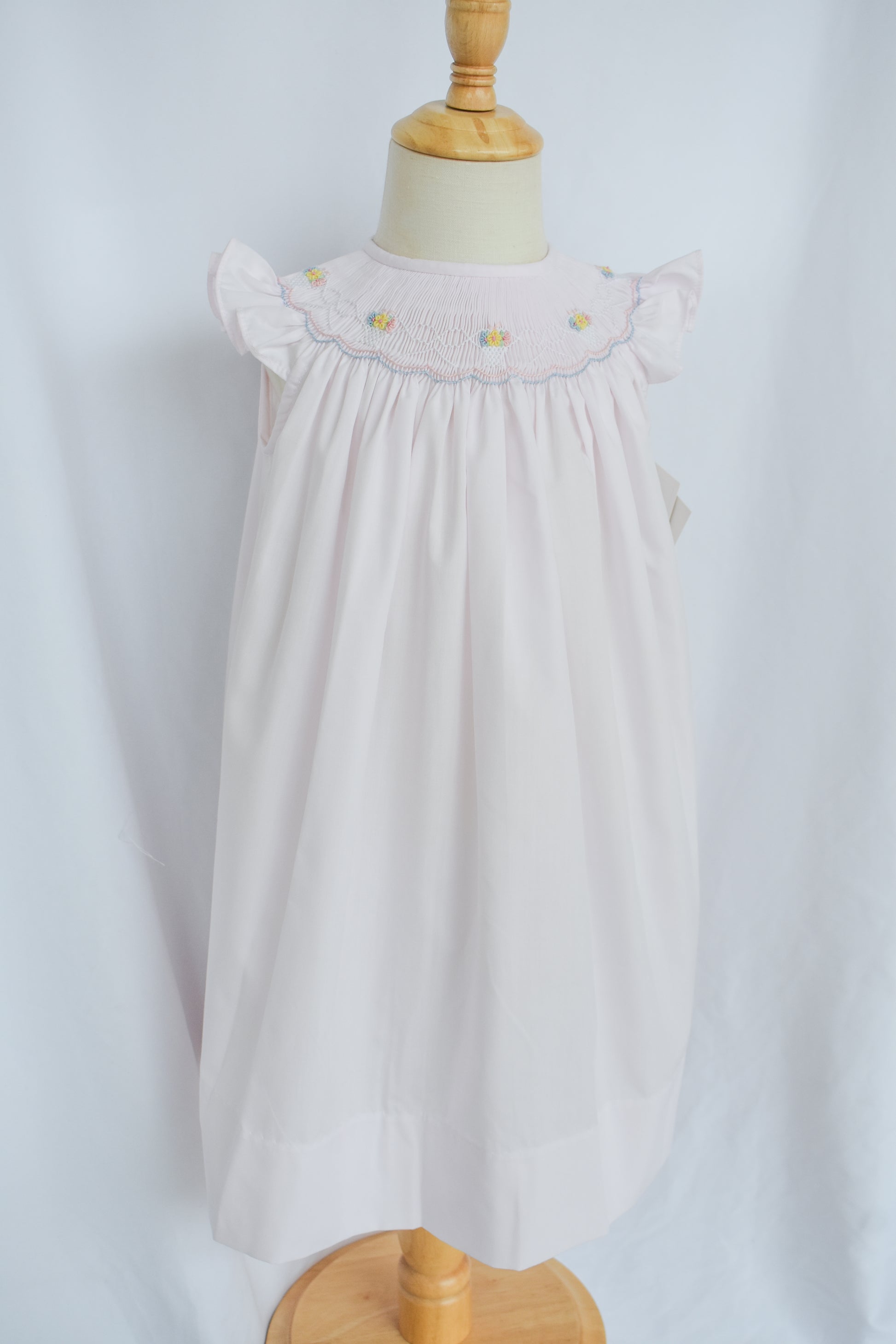 Blush Bouquets Bishop Dress Twirl in timeless elegance with this charming bishop dress, featuring delicate pink bouquets scattered across soft blush fabric. The smocked detailing at the bodice creates a perfectly fitted silhouette that's both comfortable and flattering, while the classic bishop sleeves add a touch of vintage-inspired sweetness. Ideal for special occasions, playdates, or everyday adventures, this dress celebrates girlhood with graceful style and gentle sophistication.