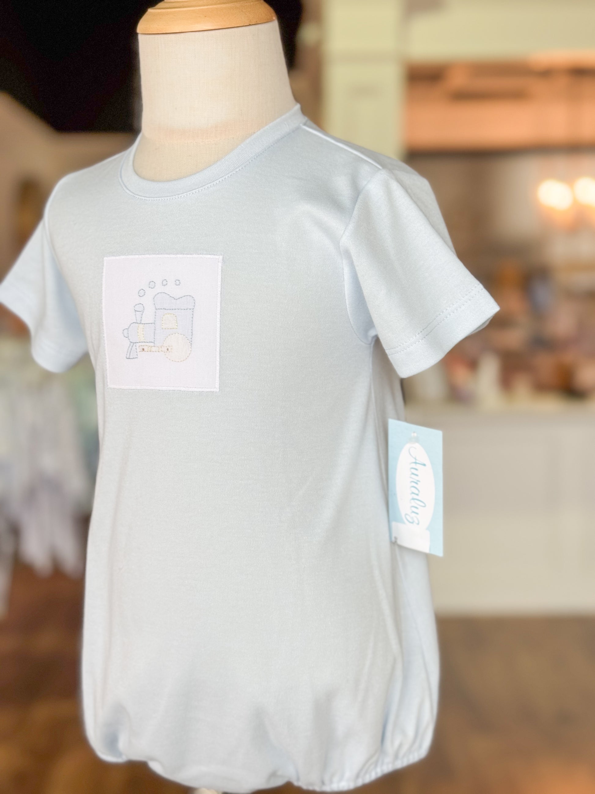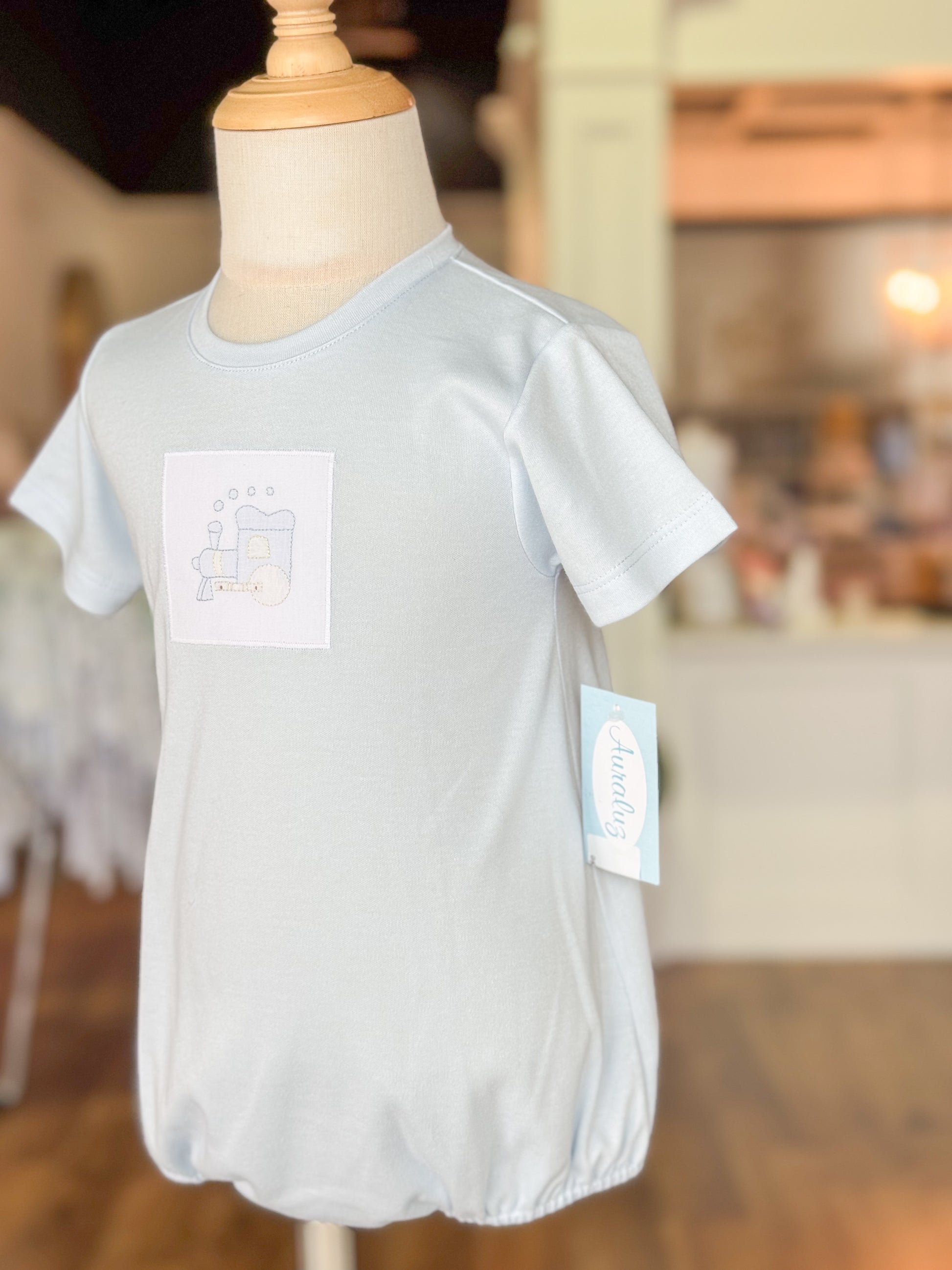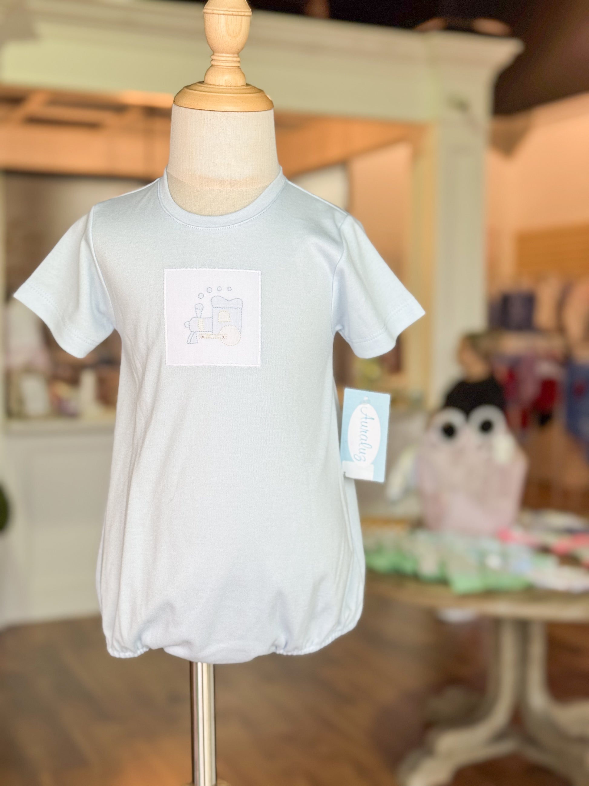 Transport your little one into a world of sweet whimsy with our Chugga Choo Choo Blue Knit Bubble. Crafted with soft, breathable fabric, this adorable bubble is perfect for playtime, nap time, and everything in between. Your baby will love the charming train design and you'll love the easy snap closure. All aboard!