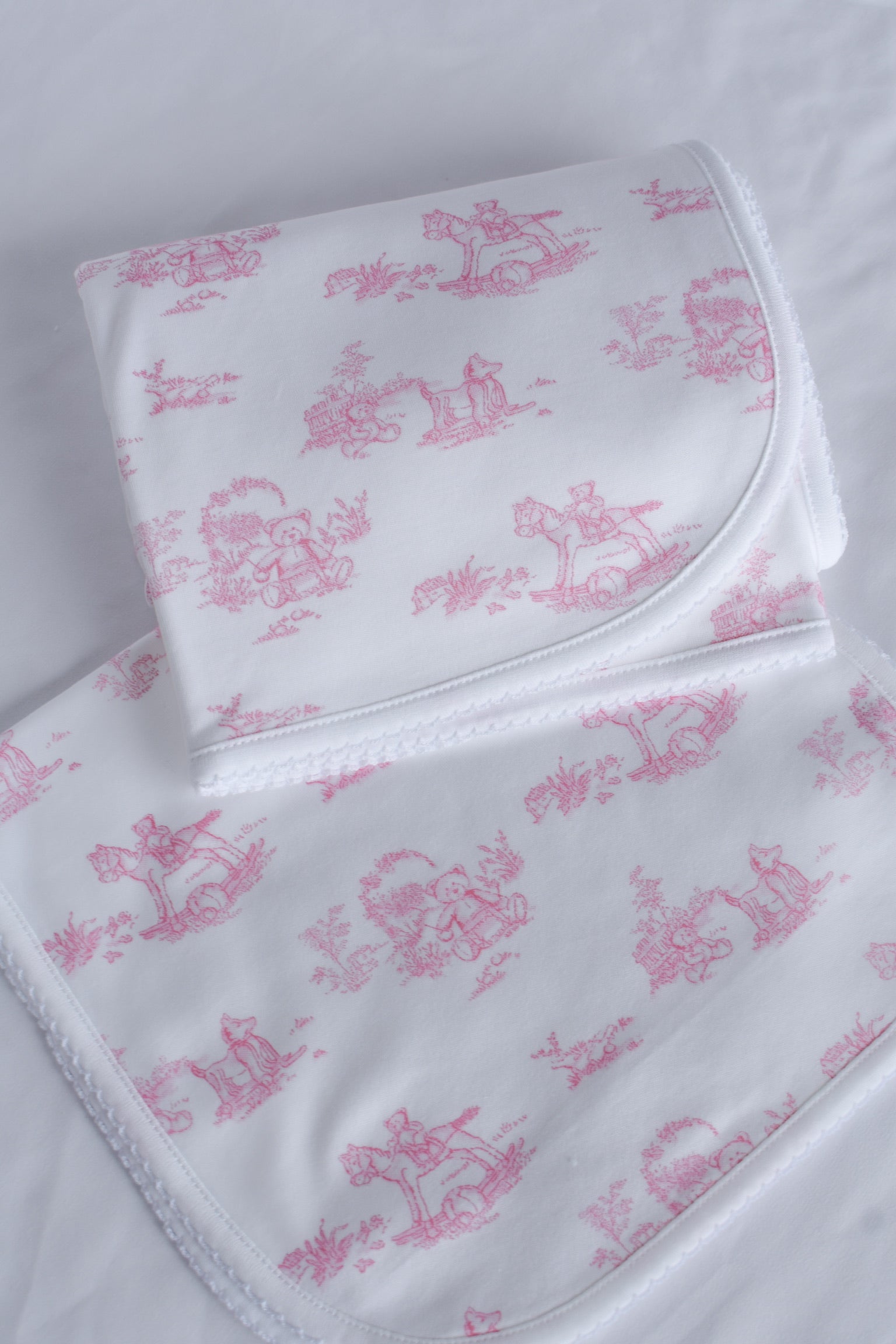 Wrap yourself in timeless elegance with our Classic Nella Pima Toile Blanket. Crafted from luxuriously soft Pima cotton, this blanket features a charming blue and pink toile print that brings a touch of traditional sophistication to any room. Perfect for layering on your bed, draping over a sofa, or snuggling up on cool evenings, this versatile piece combines comfort with classic style. The durable Pima cotton ensures lasting softness wash after wash, making it an heirloom-quality addition to your home.