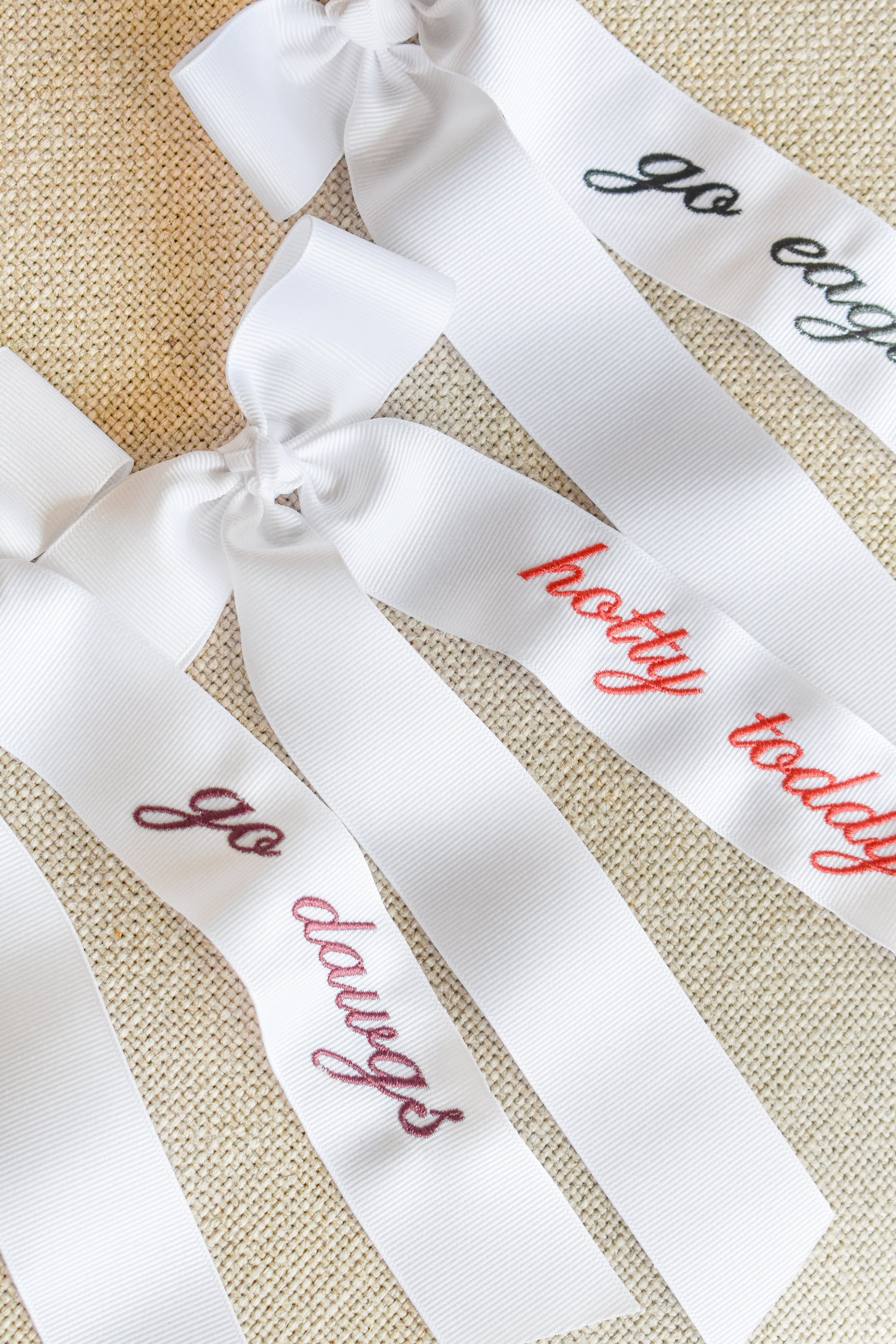 Show your team spirit with these sweet embroidered gameday long tail bows, featuring the beloved Mississippi teams. Perfect for game days, these bows add a charming and colorful touch to any outfit while celebrating local pride. Soft and easy to wear, they keep your look playful and spirited from tailgate to final whistle.