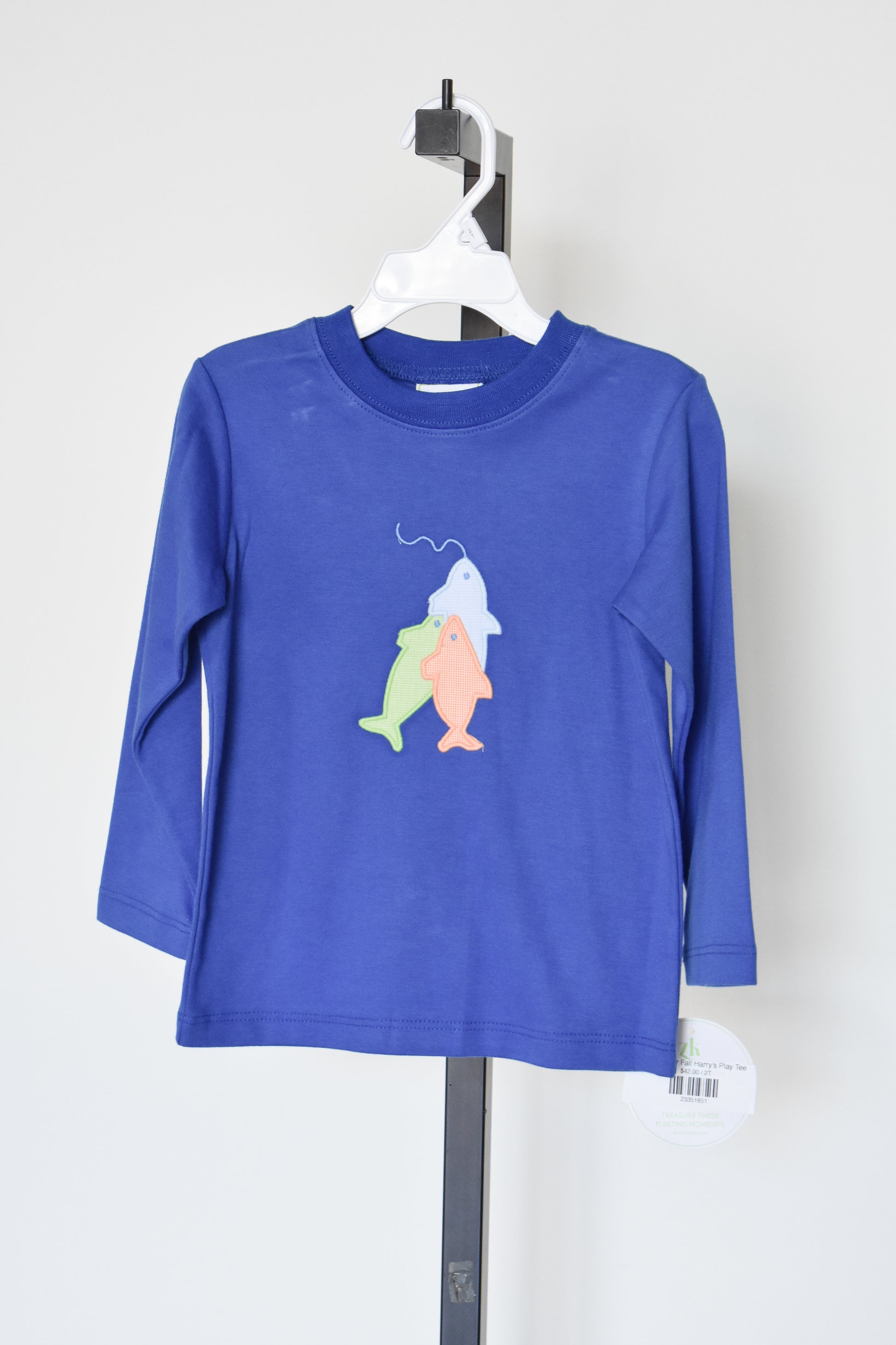 This royal blue long sleeve play tee features a fishing lure applique, perfect for any fall adventure. Made with soft knit fabric, it offers comfort and style for little fisherman. Catch the best of fall with Fishin For Fall Harry's Play Tee!