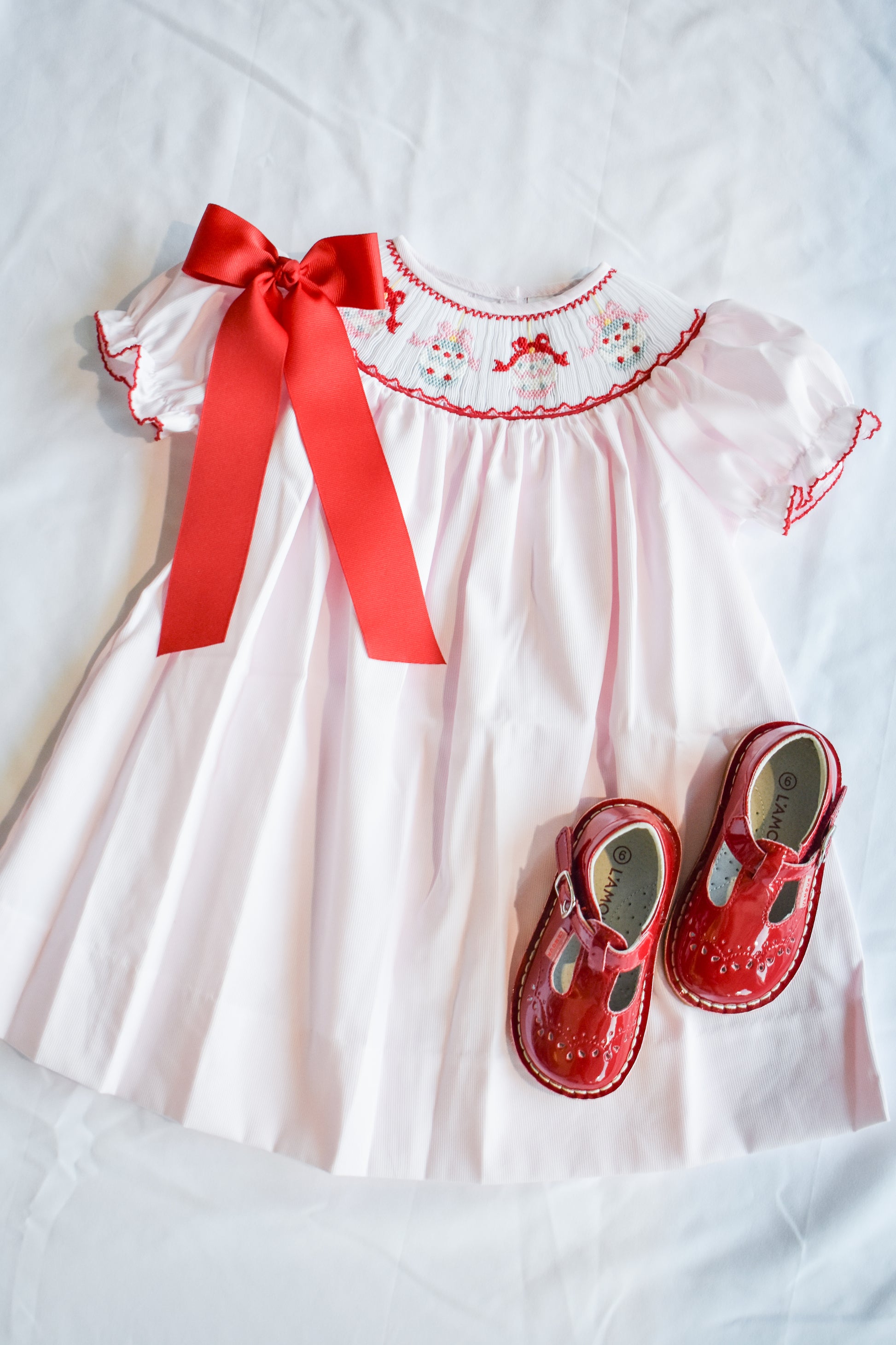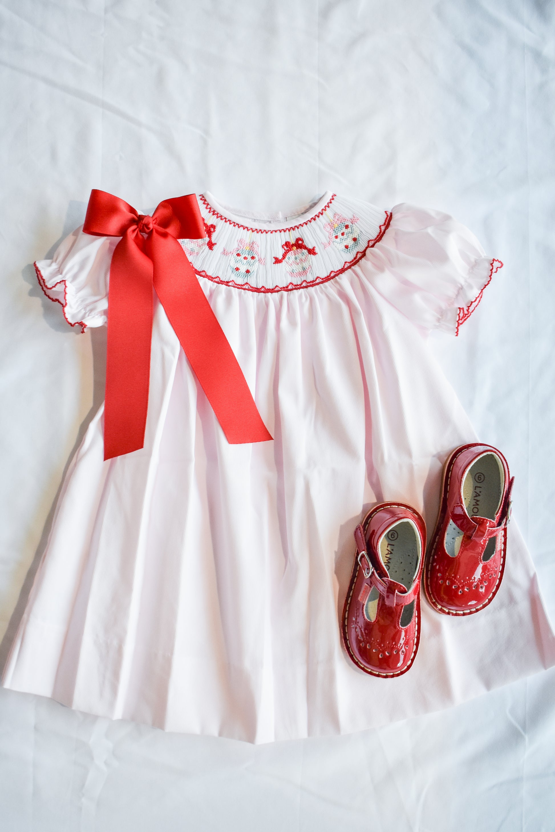 This charming pink bishop dress features delicate smocked ornament details and a playful red trim, perfect for adding a touch of sweetness to any special occasion. Designed for comfort and style, it beautifully blends classic elegance with a cheerful pop of color. Ideal for little ones who love to twirl and shine.