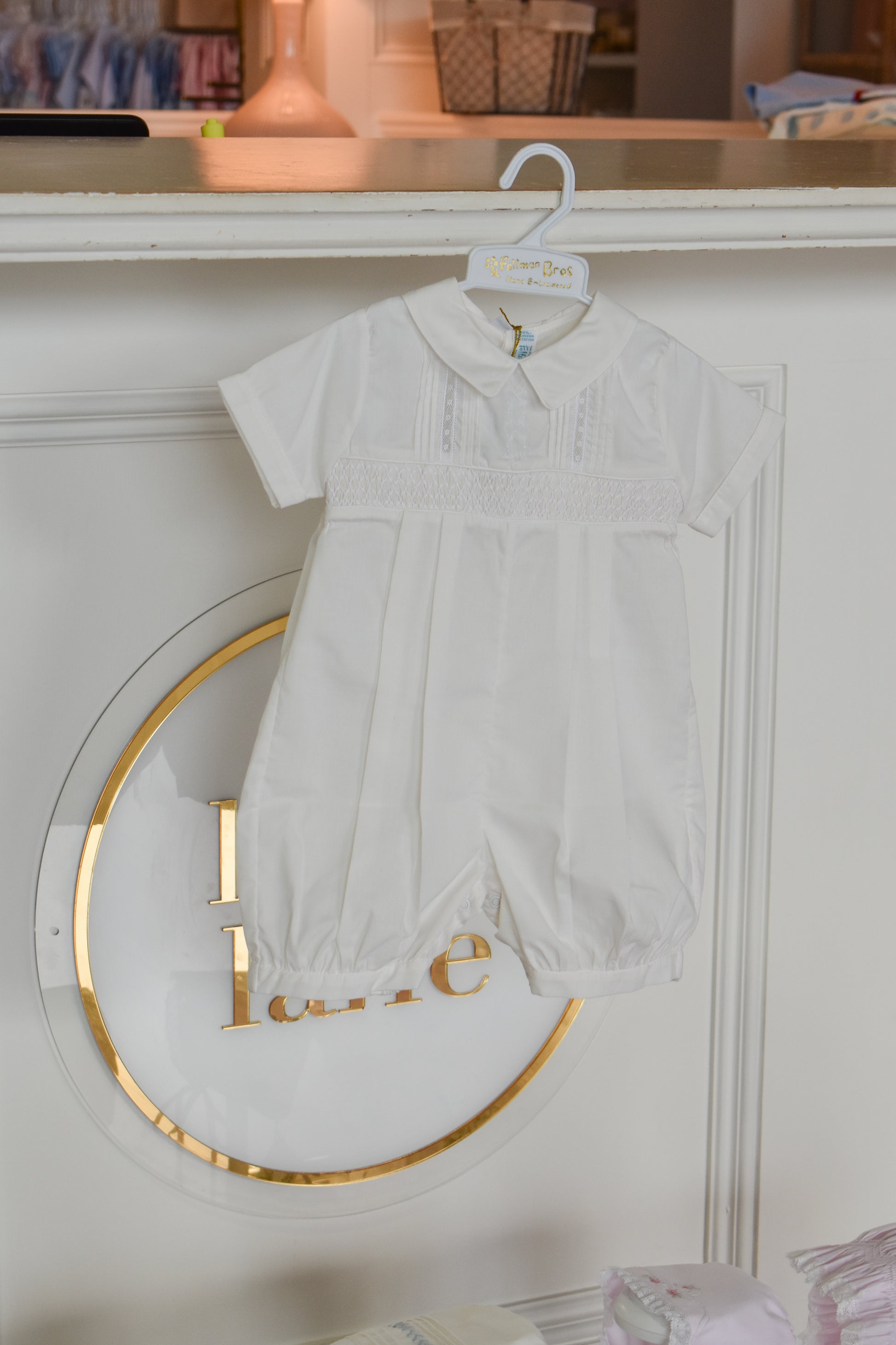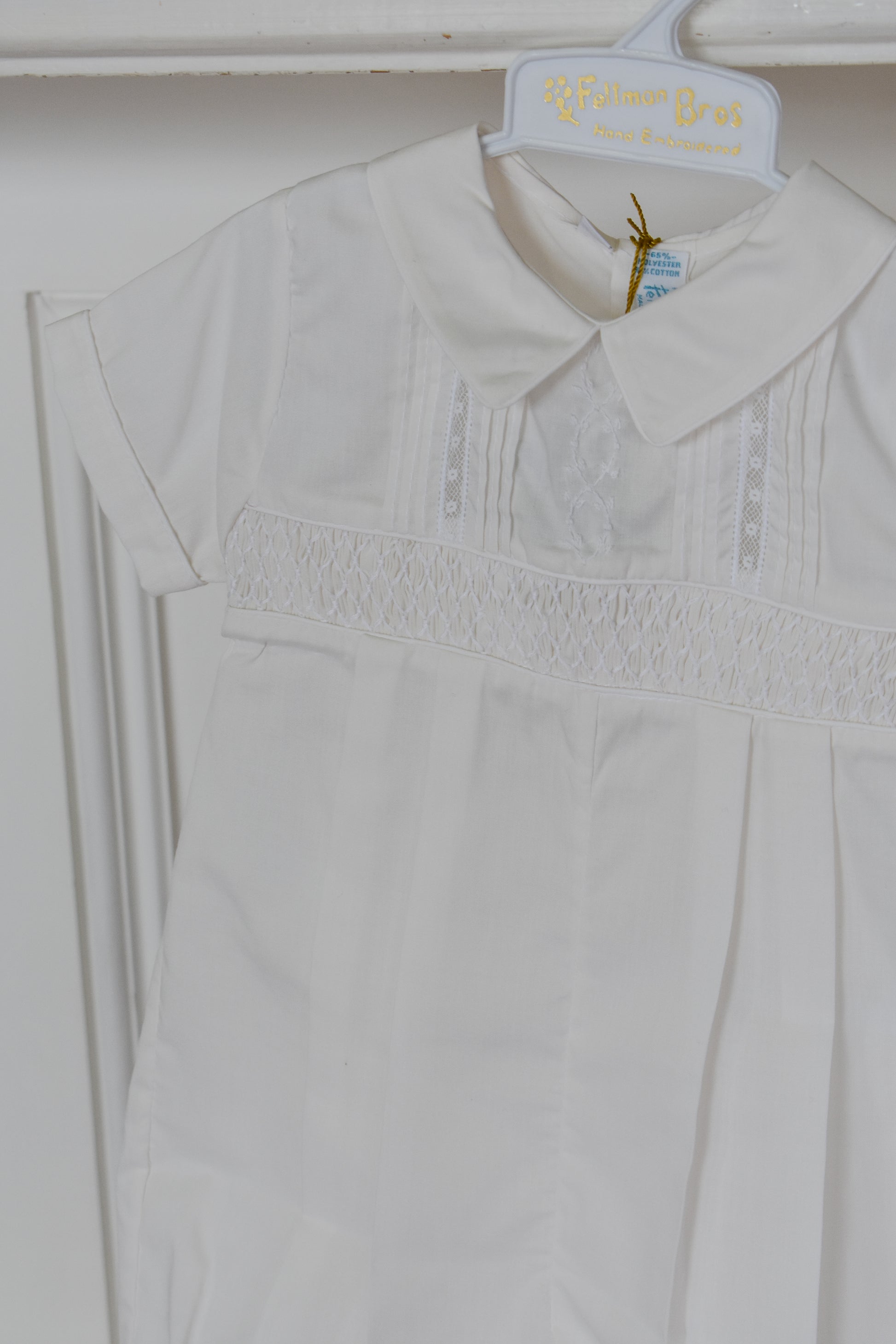 Dress your little prince for his special role with the Little Gentleman’s Vintage Wedding Romper. Available in classic white and ivory, this romper features delicate hand embroidery, pintucks, lace, and smocking for a timeless, vintage charm. Perfectly coordinating with flower girls, it adds an elegant touch to any wedding occasion. Soft and comfortable, it ensures your ring bearer looks sweet and dapper all day long.