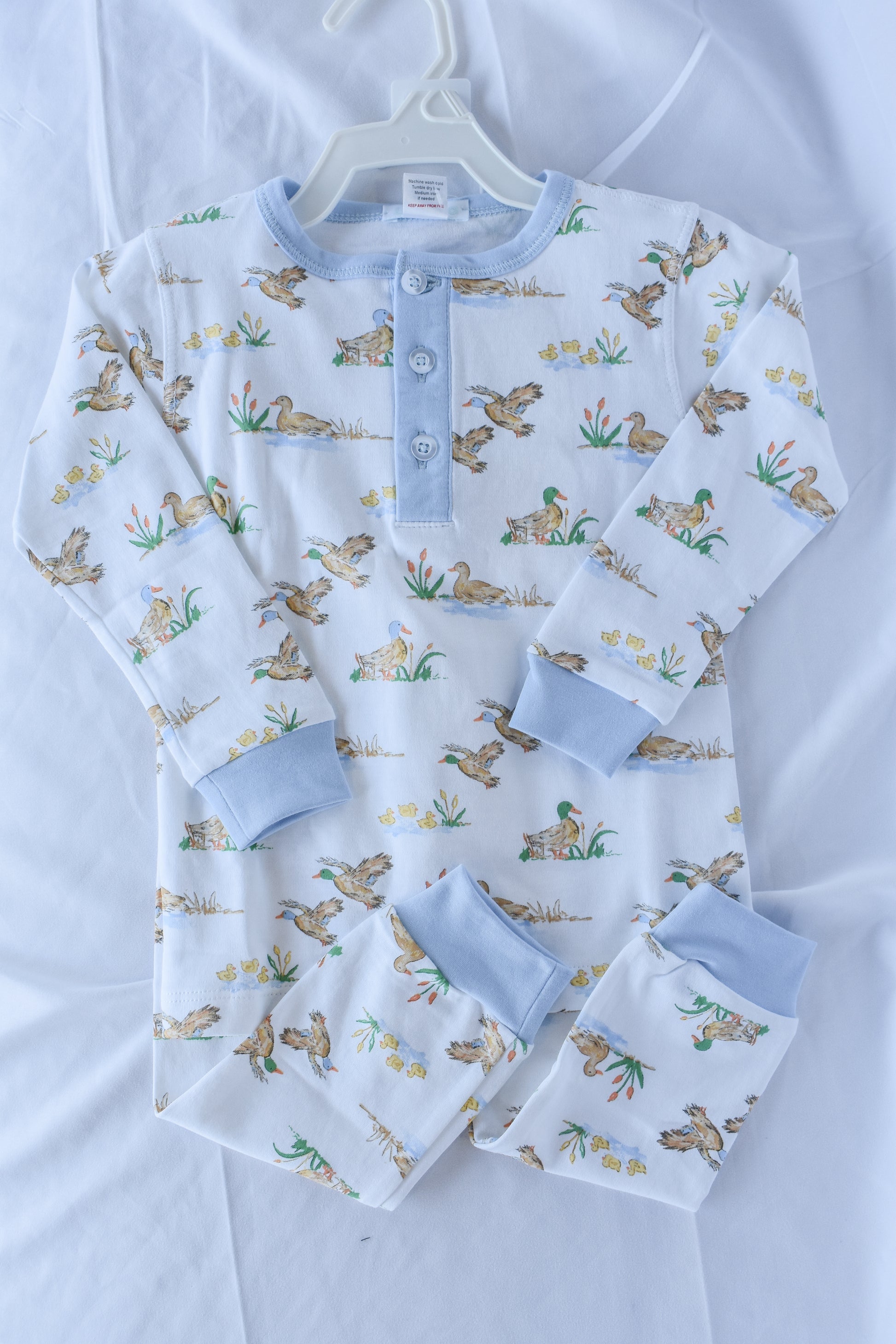 The Marshy Dreams Ruffled PJ Pant Set brings cozy comfort with a touch of charm for your little one. Featuring soft long sleeves and playful ruffled trims, this pajama set is adorned with a delightful mallard marshy print that sparks imagination. Perfect for restful nights and lazy mornings, it combines gentle fabrics with a sweet design to keep your child snug and stylish.