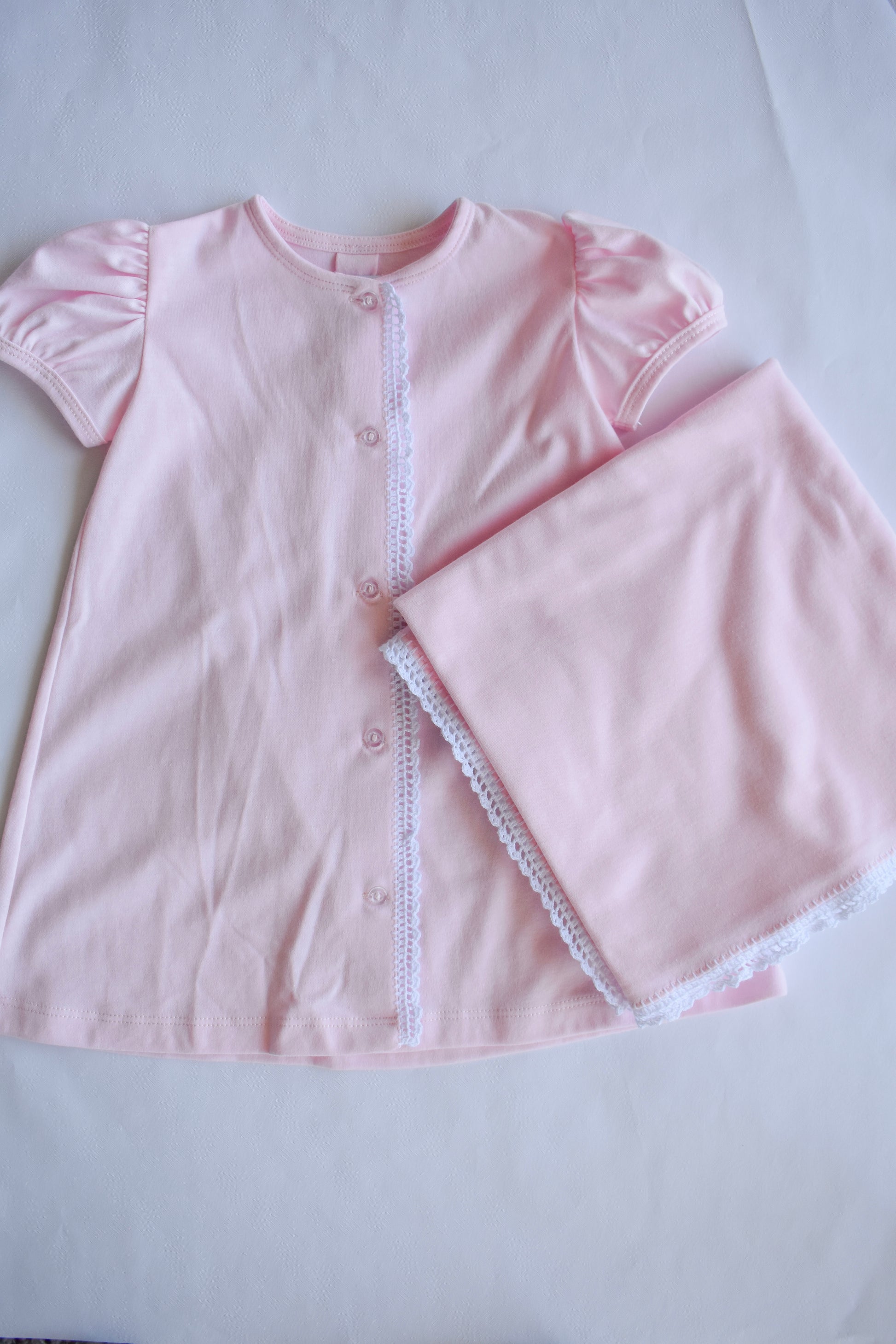 Wrap your little one in the sweetest dreams with our Pink Skies Knit Daygown. This delicate pink sleeper features beautiful crochet edging that adds a touch of heirloom charm to everyday comfort. Perfect for those precious first months, when softness and simplicity matter most.