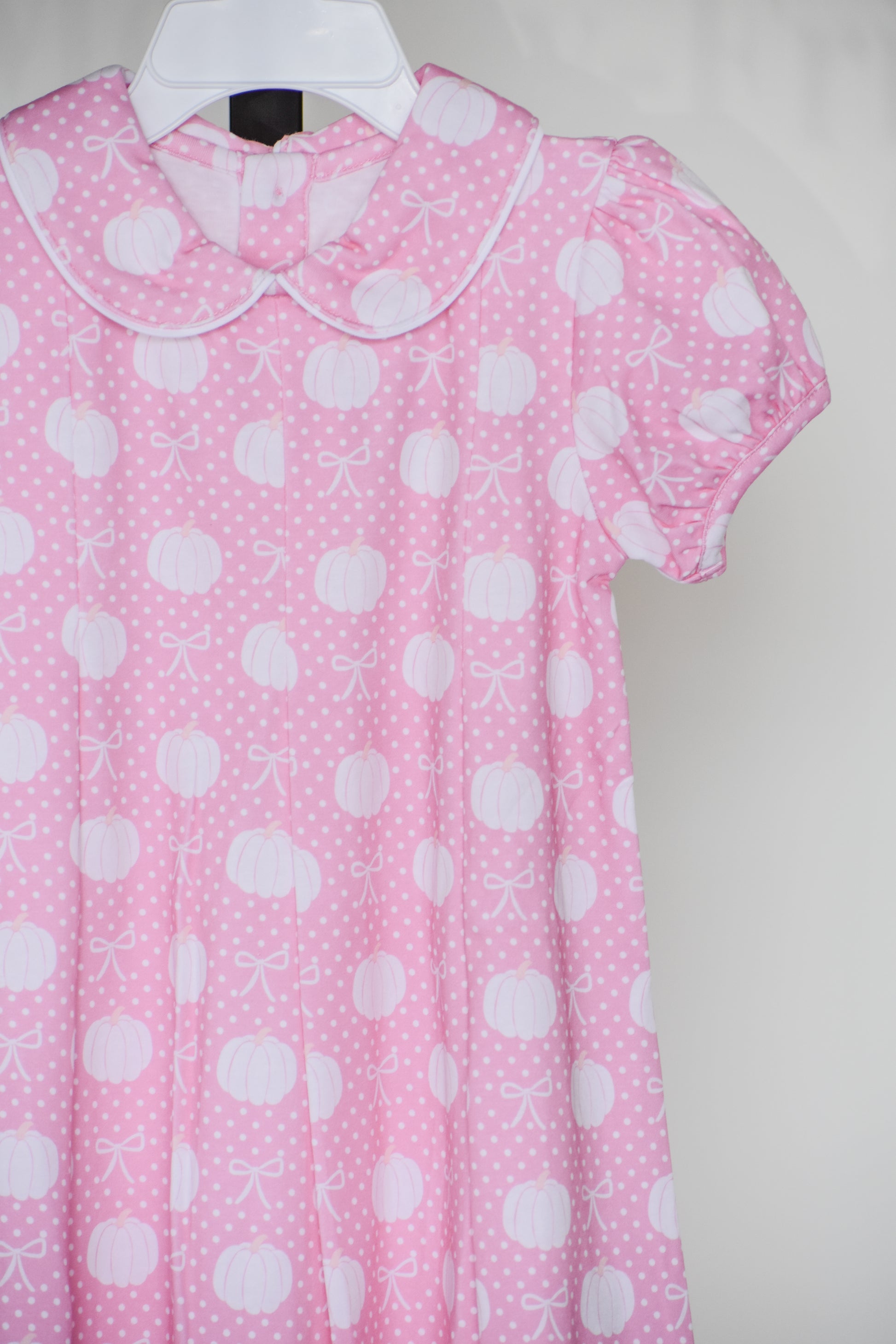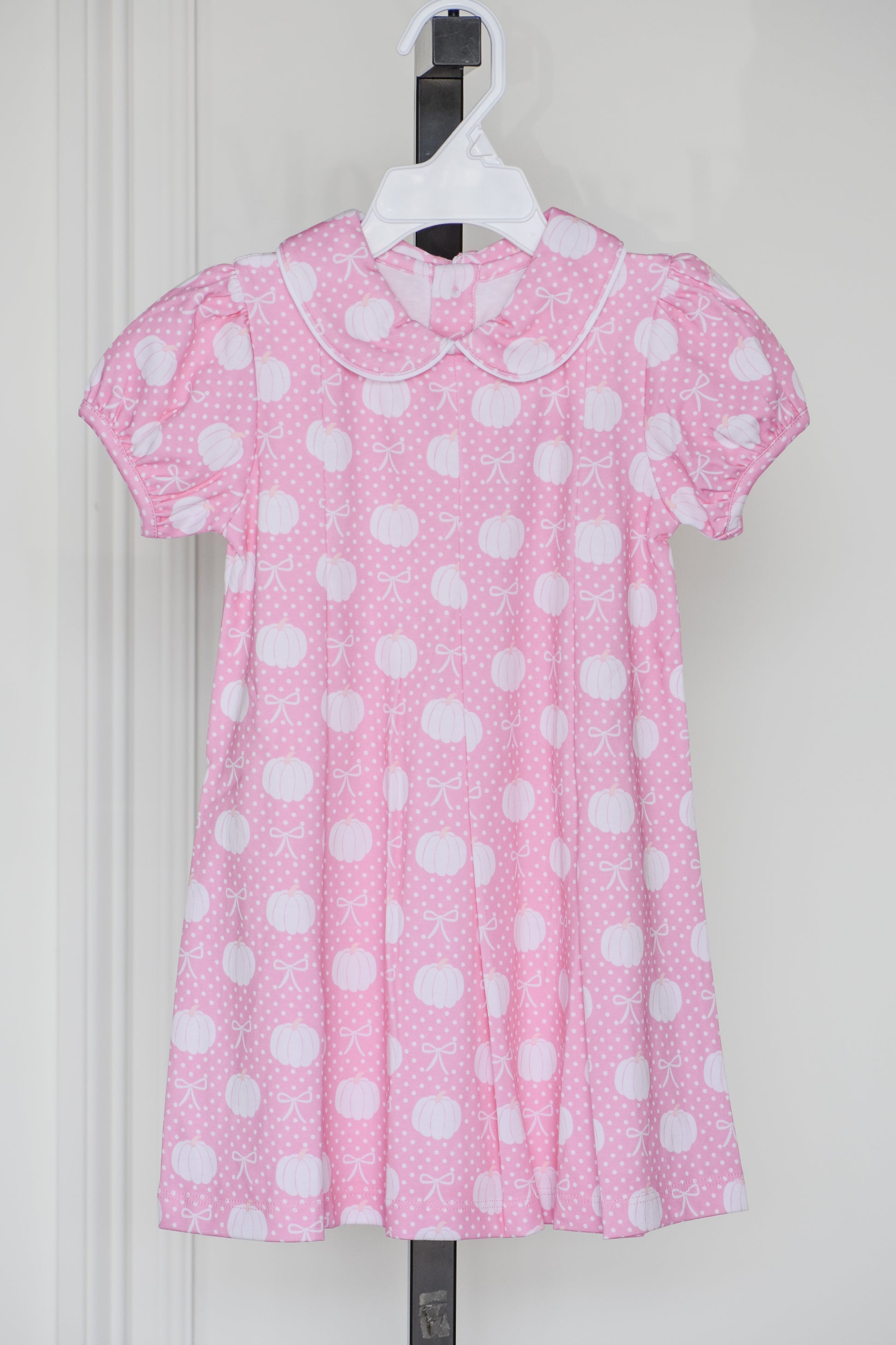 "Your little one will look charming in our Pink Patch Cutie-Penny Pleat Dress. With a sweet pumpkin print and delicate pleats, she'll be the cutest at any occasion. Made with high-quality materials, this dress is perfect for any princess."