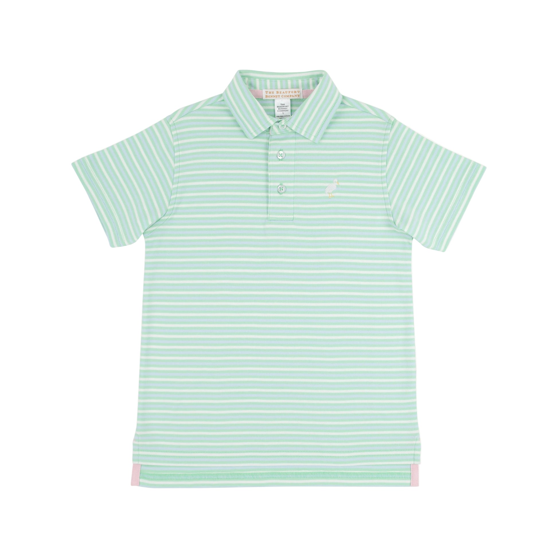 Introducing the Prim and Proper Polo in our charming Sumner County Stripe—a delightful addition to any young gentleman's wardrobe. This short-sleeve polo features a graceful multicolor stripe pattern in soothing Grace Bay green tones, perfect for creating polished, put-together looks. Crafted with comfort in mind, it's ideal for everything from family gatherings to casual outings. The classic polo silhouette ensures timeless style that pairs beautifully with shorts, chinos, or jeans. A sweet choice for parents seeking quality pieces that blend sophistication with everyday wearability.