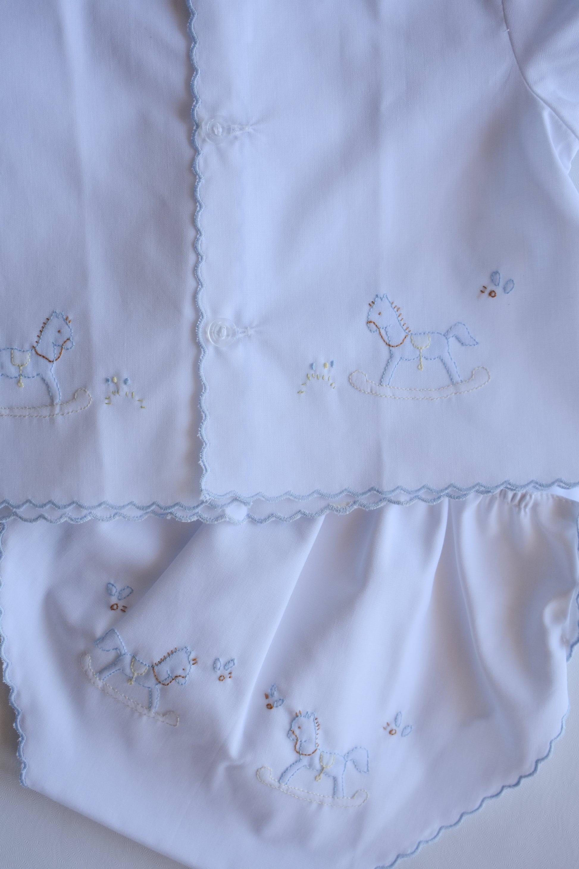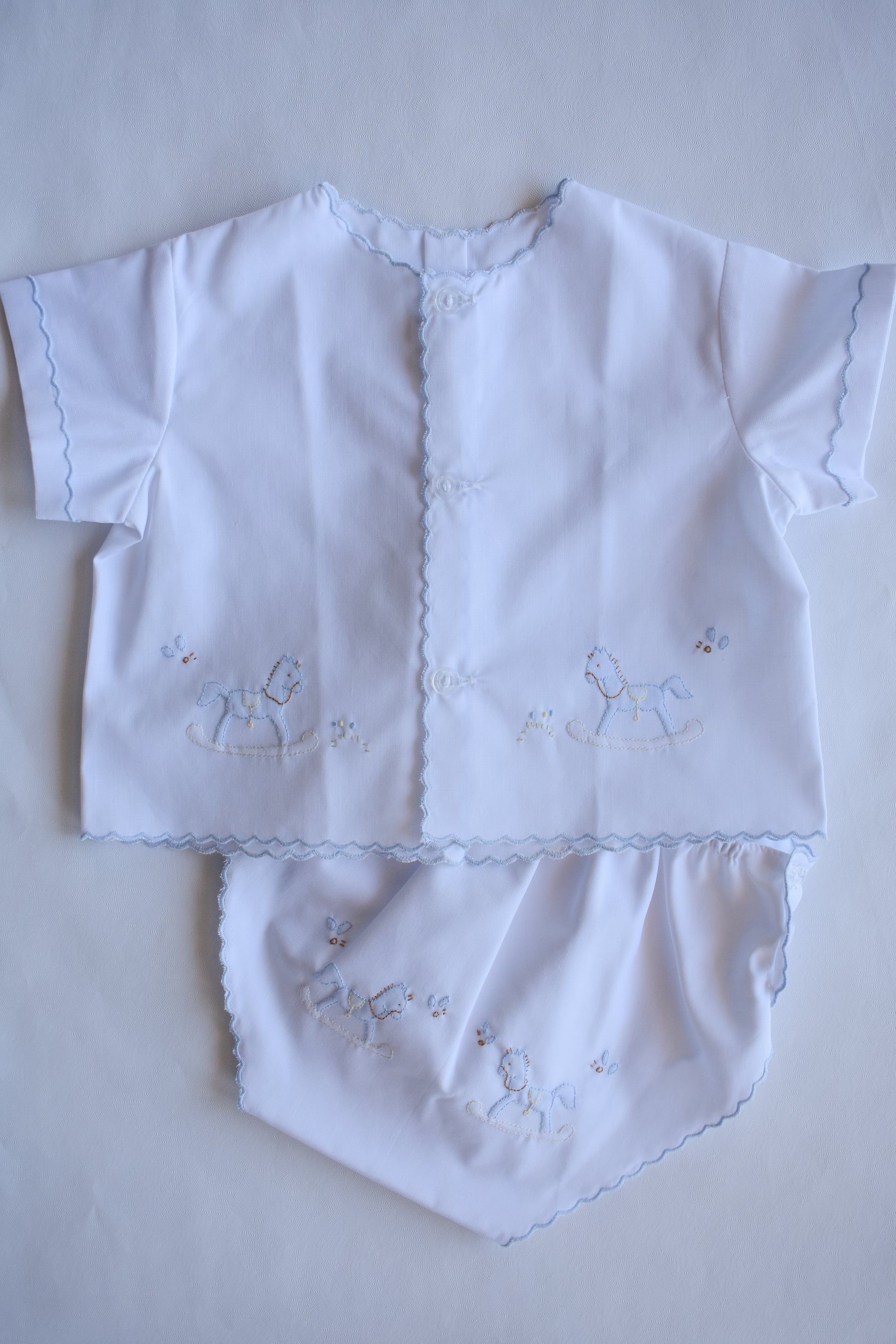Wrap your little one in charm with our Rocking Horse Diaper Set. This adorable ensemble features a playful rocking horse design that brings a touch of nostalgia to your baby's wardrobe. Crafted with soft, gentle fabrics that are kind to delicate skin, this set offers both comfort and style for your precious bundle. Perfect for everyday wear or special occasions when you want your baby to look absolutely darling.