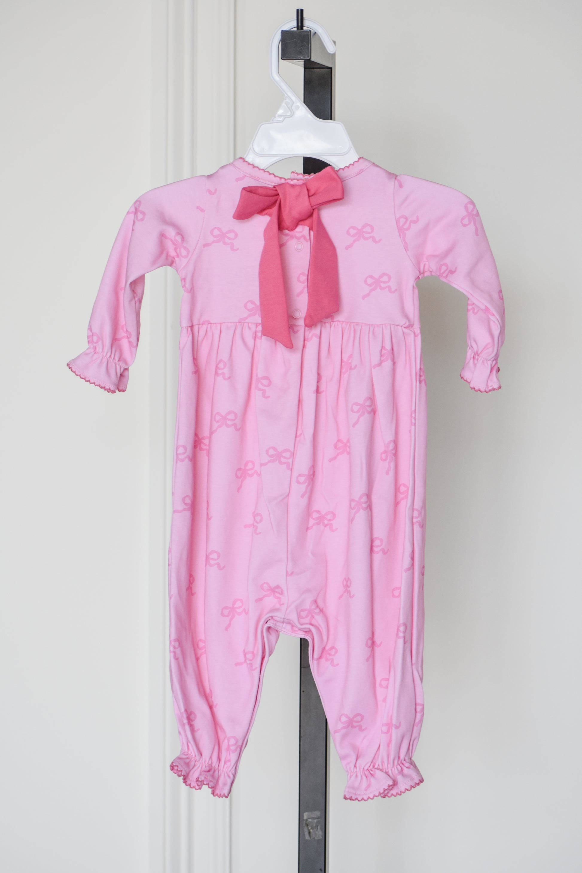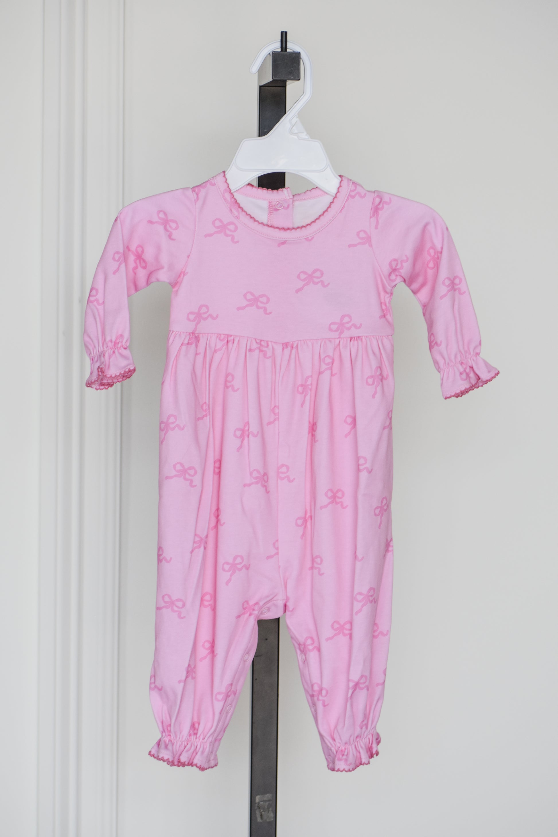 The Simply Sweet-Isla Long Bubble offers a charming and comfortable fit for your little girl. This lovely long bubble features adorable pink bows and a printed knit design. Made with high-quality materials, it ensures both style and durability. Keep your child looking sweet and feeling cozy in this delightful piece.