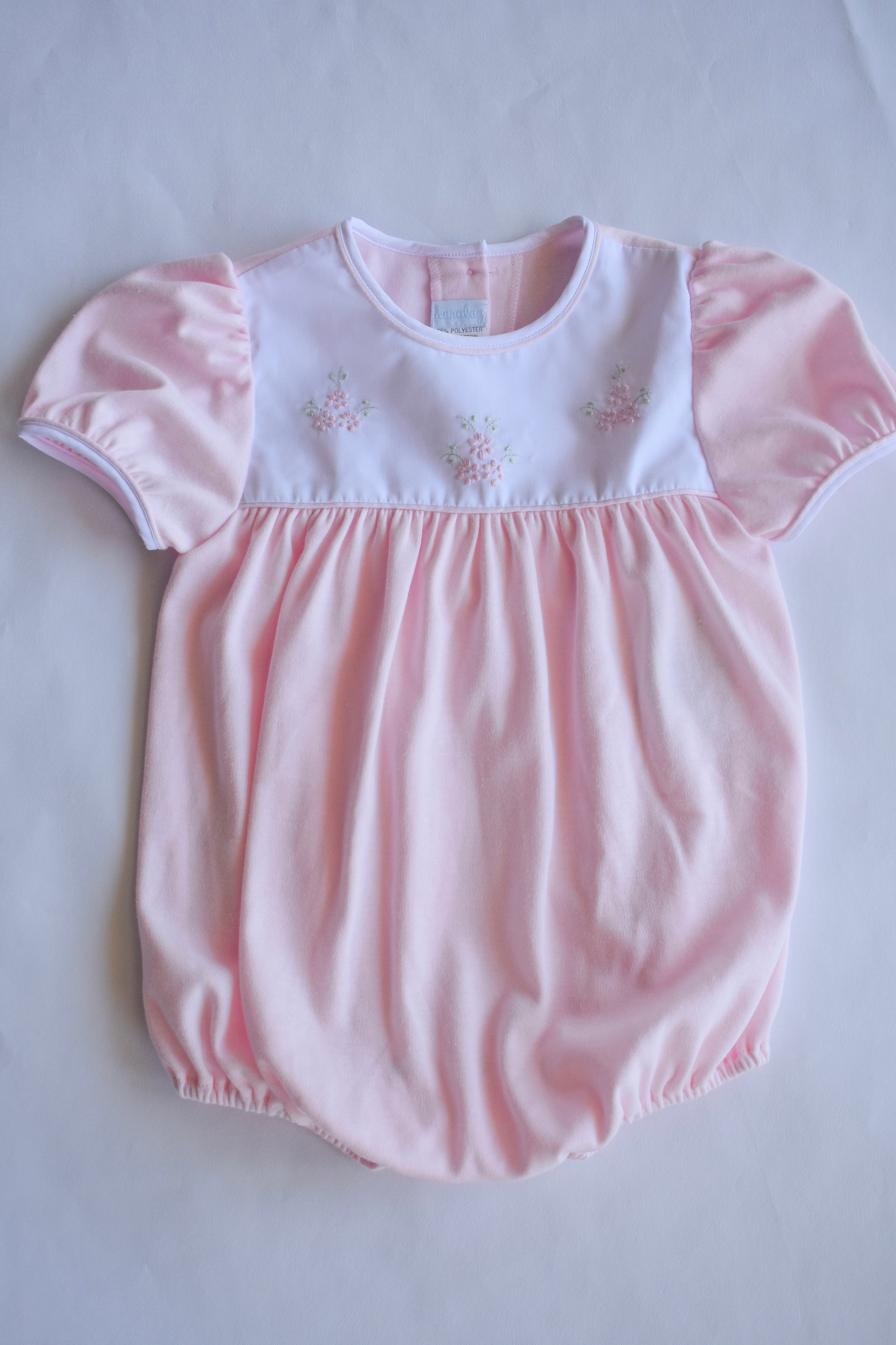 Wrap your little one in adorable comfort with our Sweet Blossoms Pink Knit Bubble. This charming pink knit features delicate floral embroidery for a touch of sweetness. Perfect for playdates or special occasions, this bubble romper keeps baby cozy while looking absolutely precious. The soft fabric and thoughtful design make dressing your little darling a joy.