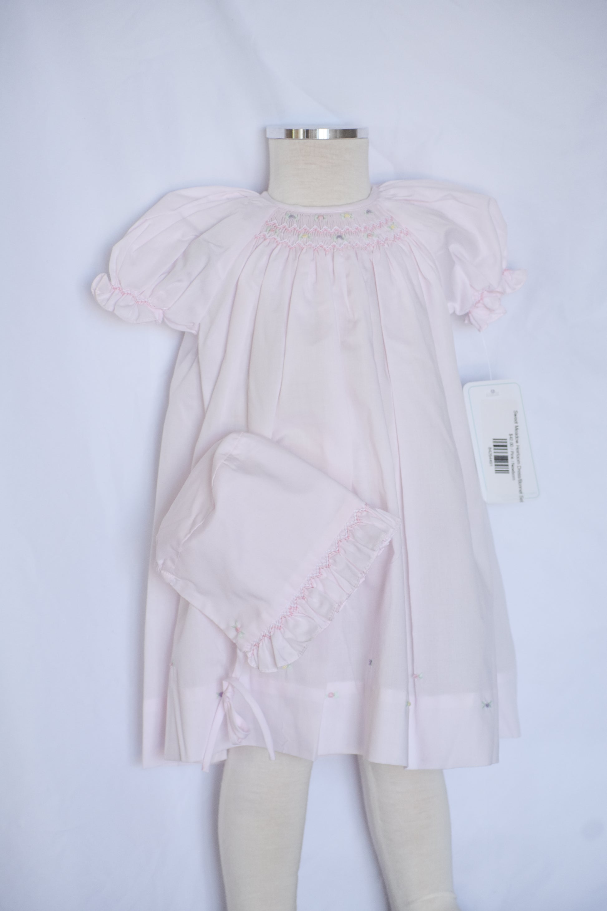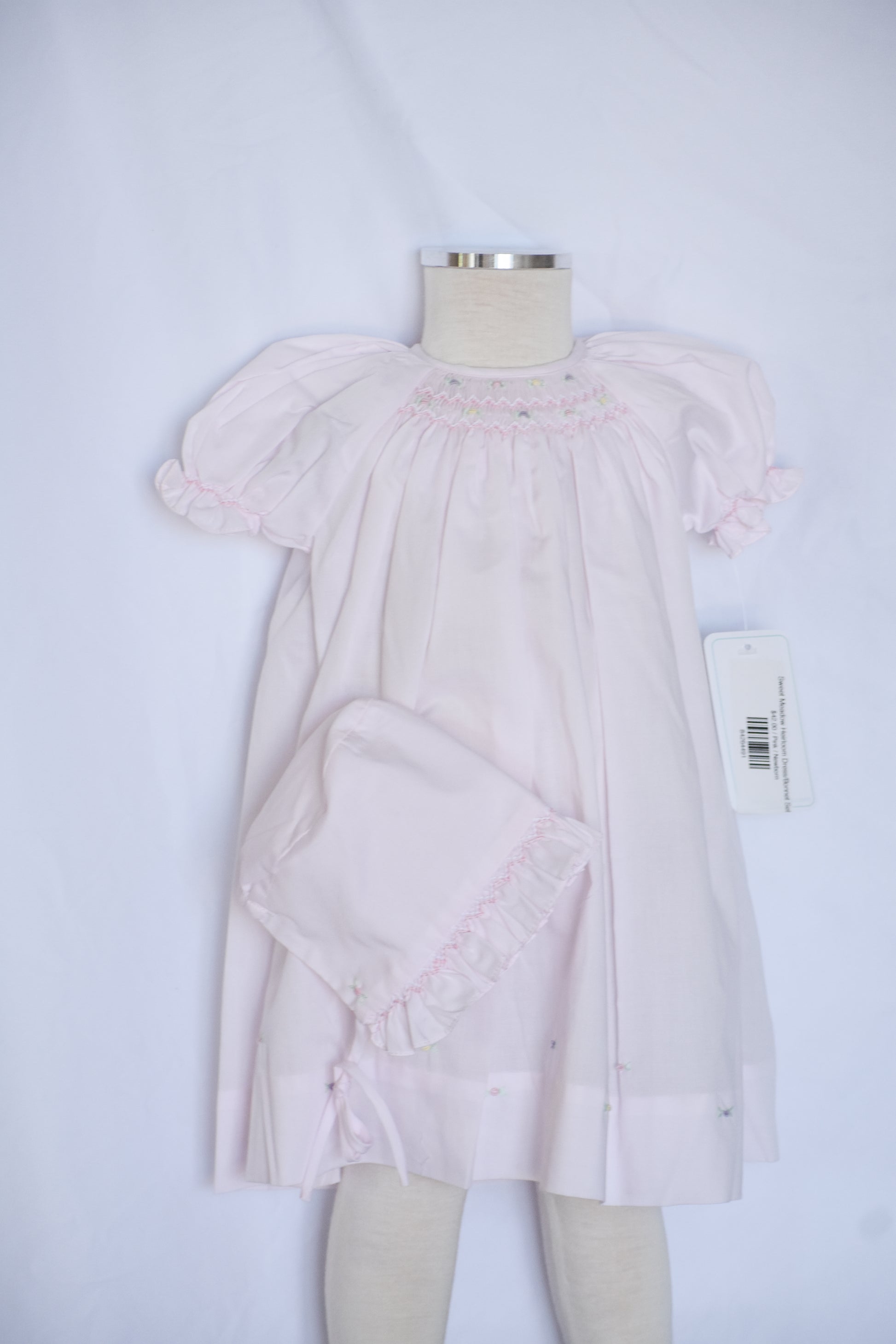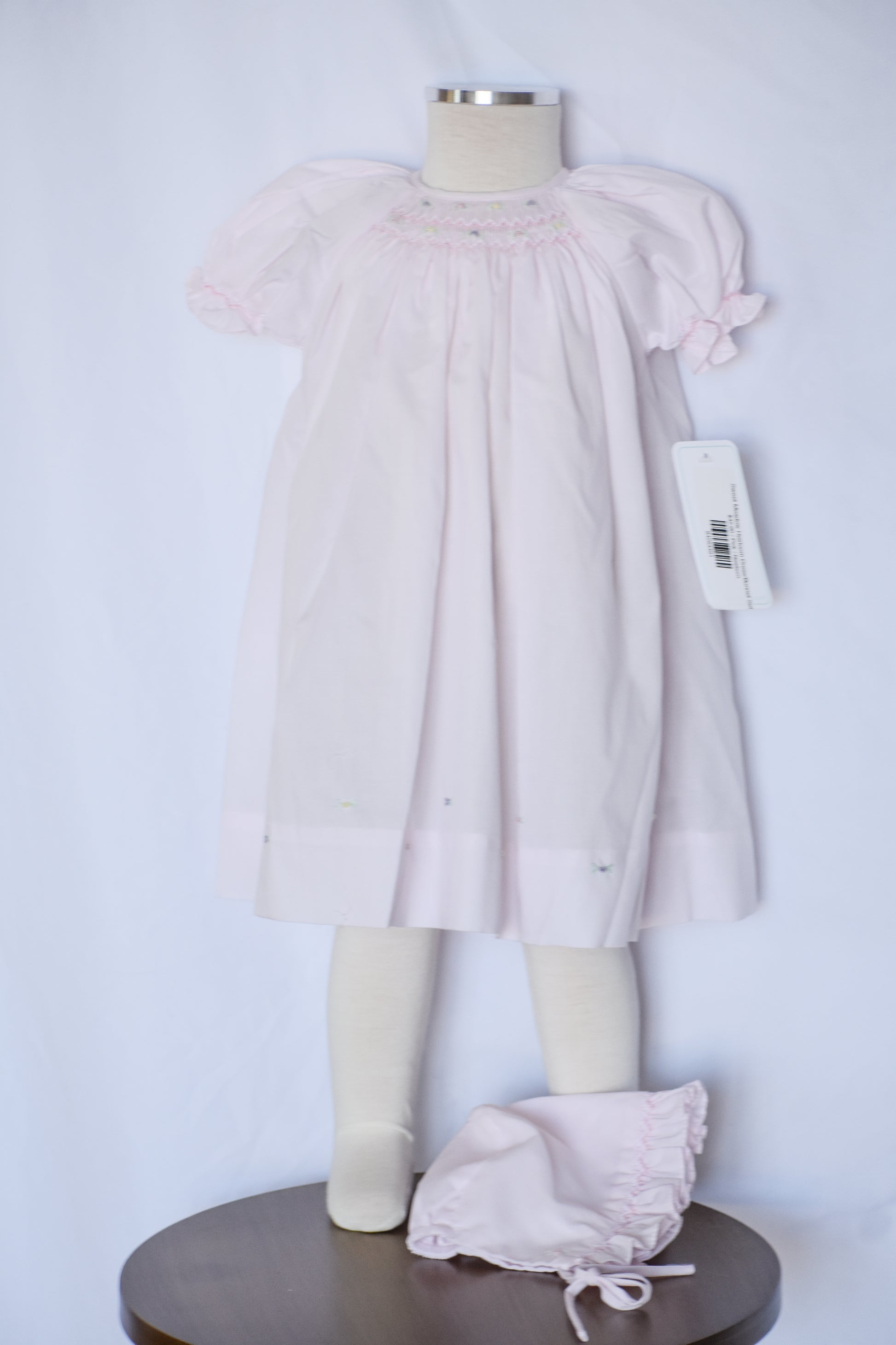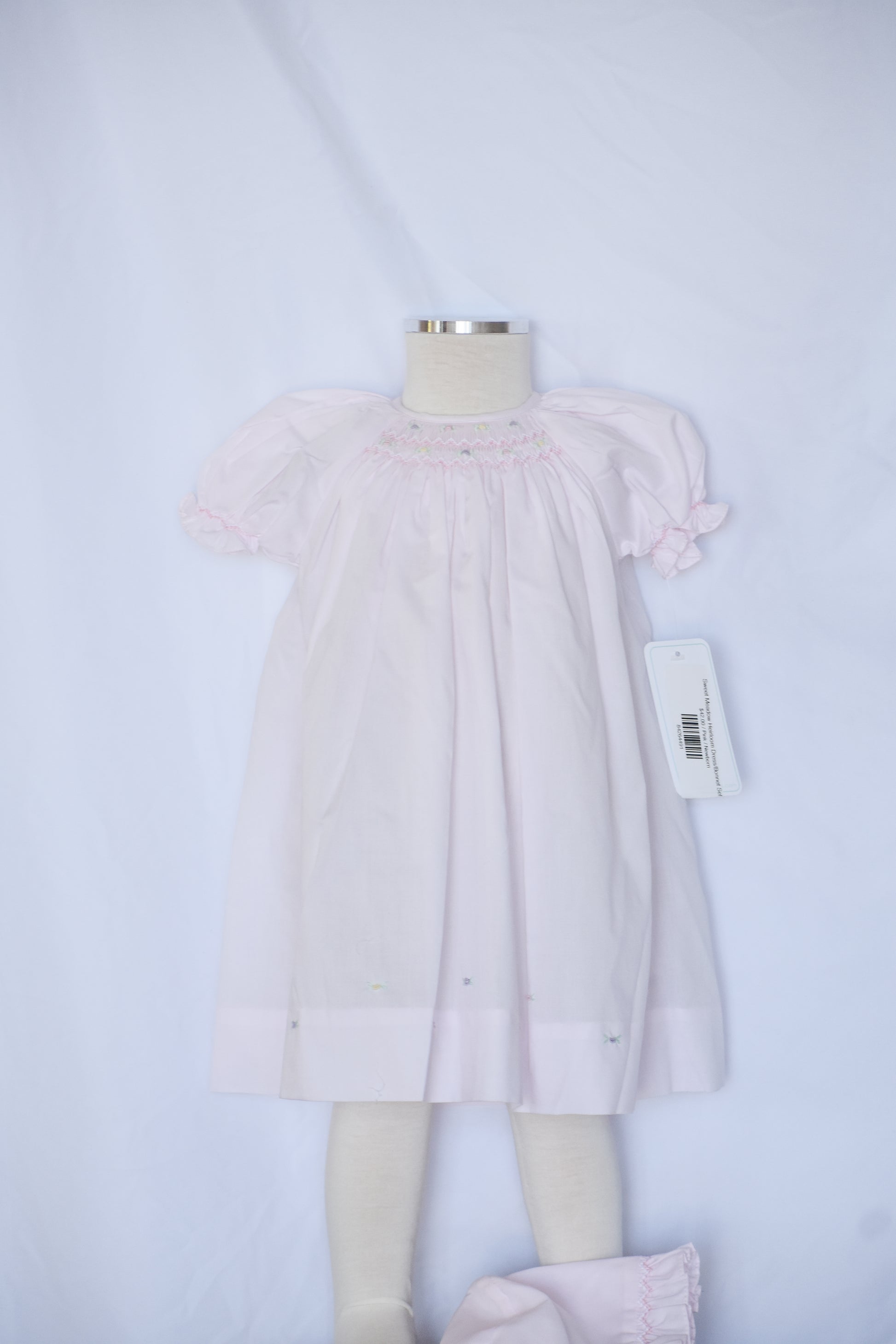 Introduce your little one to timeless elegance with this charming heirloom dress featuring delicate floral smocking in soft pink and white. The classic design captures vintage-inspired beauty with meticulous hand-smocked details that add texture and dimension. Perfect for special occasions, portraits, or everyday moments you'll treasure forever. This precious piece becomes a cherished keepsake to pass down through generations, combining heirloom quality with the sweetness of childhood memories.