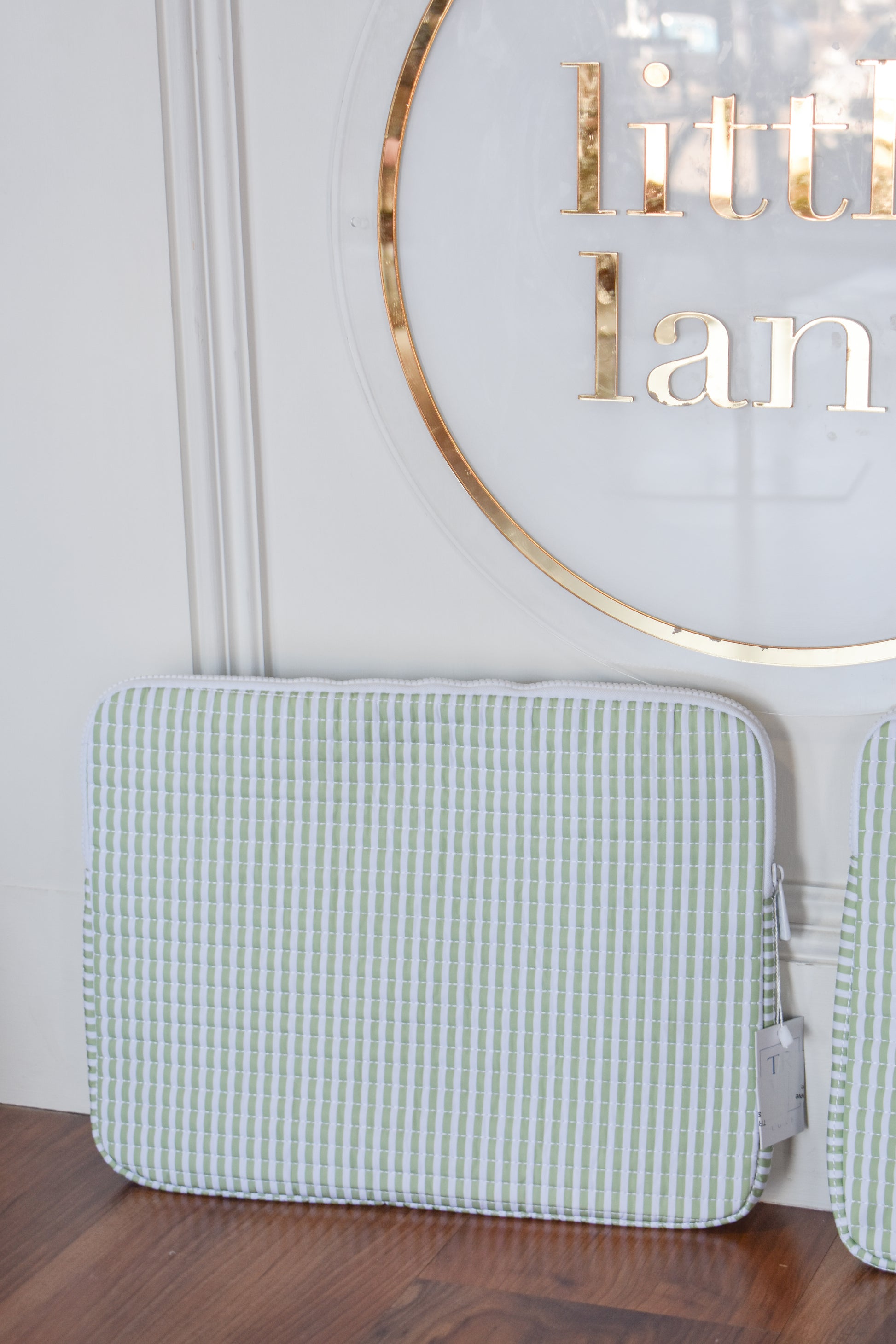 Protect your laptop in style with the TRVL Quilted Laptop Sleeve. This thoughtfully designed sleeve combines elegant quilted craftsmanship with practical protection, featuring full padding and a secure zippered closure. Measuring 14.5"w x 11"h x 1"d, it accommodates laptops up to 14 inches perfectly. The stain-resistant, wipeable fabric makes cleanup effortless—simply wipe with a damp cloth inside and out. Whether you're settling in at home or heading out on an adventure, this durable sleeve keeps your device safe and looking beautiful.