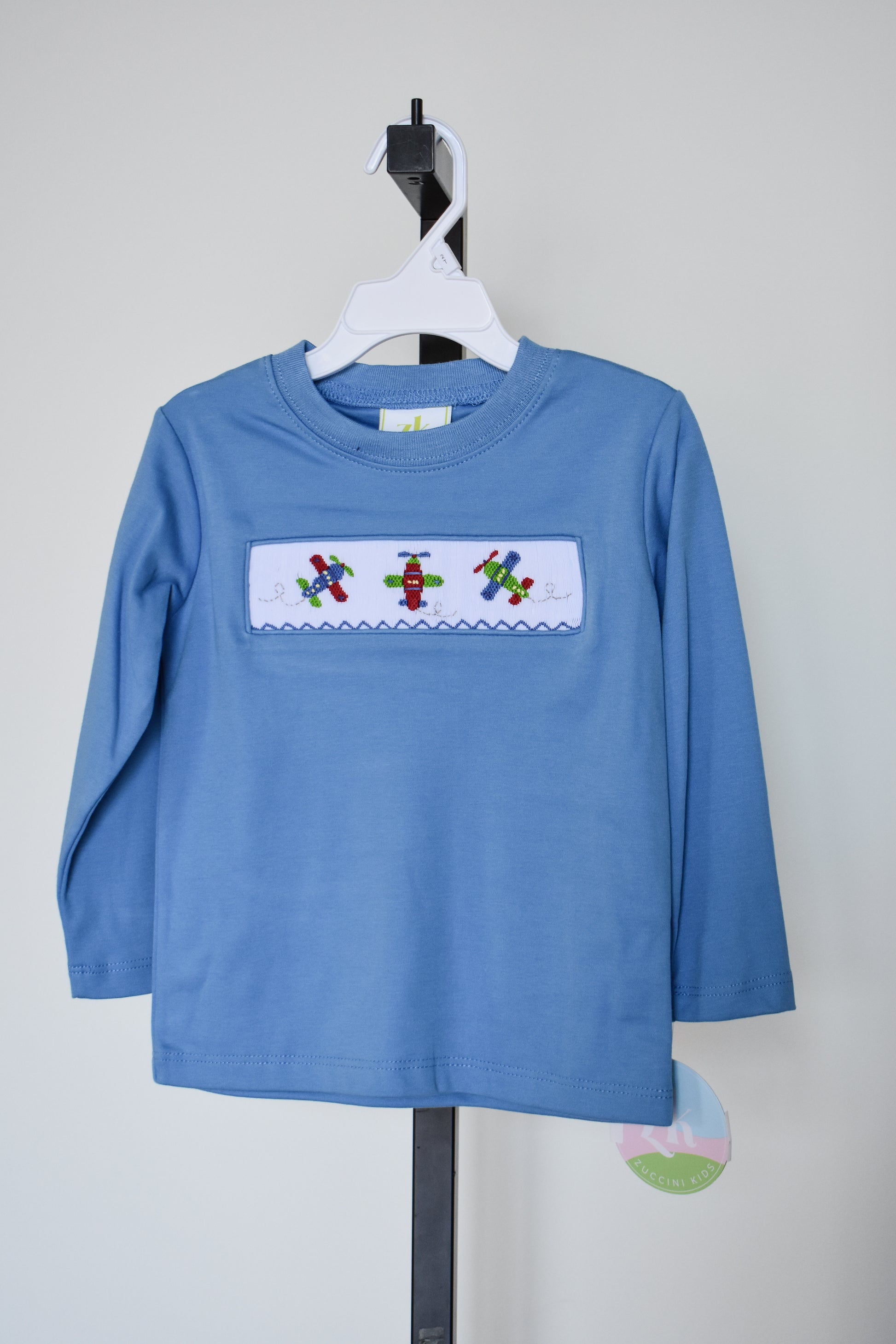 "Let your little one take off with the Up, Up & Away Harry's LS Play Tee. This periwinkle knit long sleeve boy play tee features appliquéd airplanes for an extra touch of fun. Perfect for everyday wear, your child will be soaring in style."