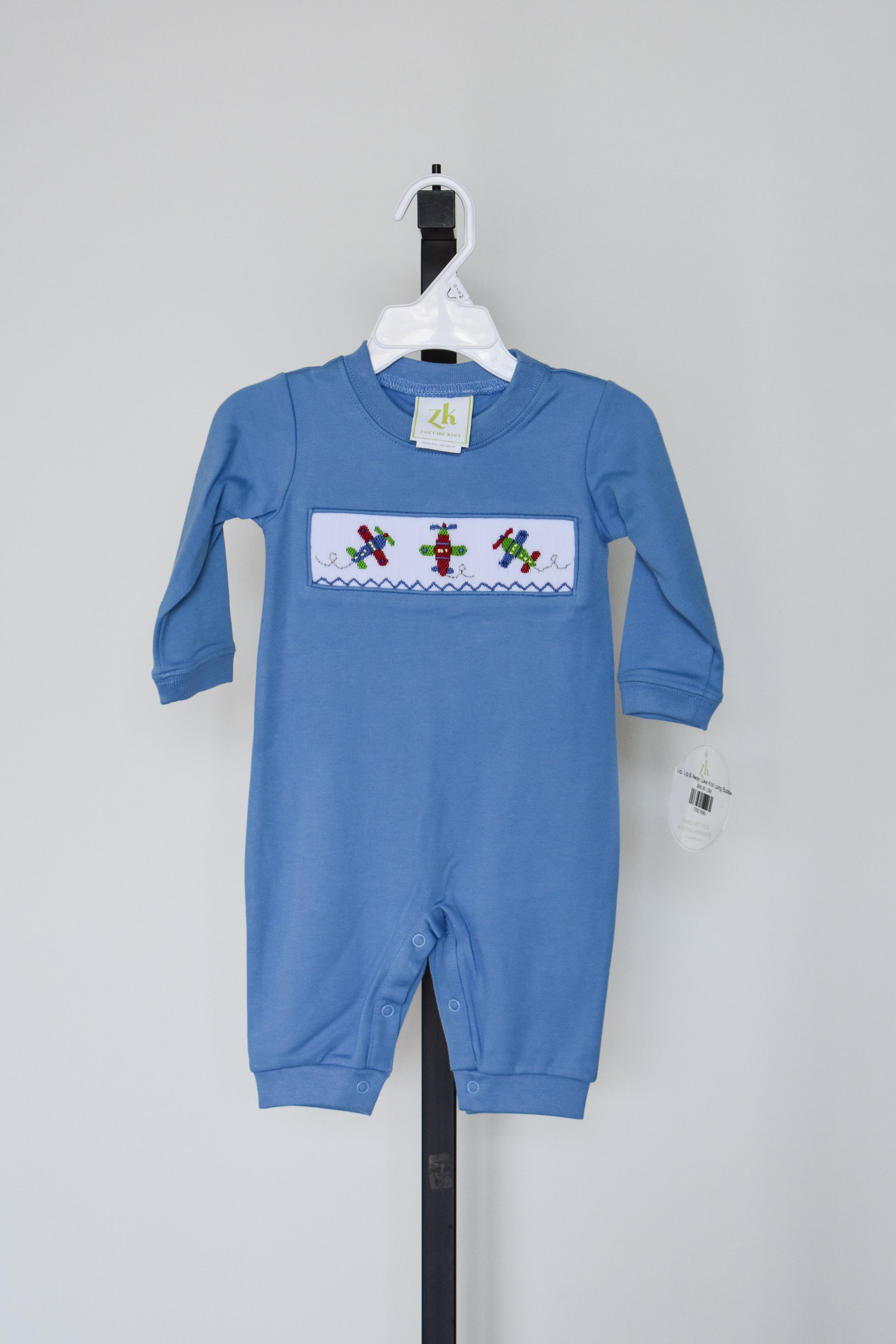 This periwinkle knit long bubble features an adorable airplane applique that will lift your little one's spirit up, up, and away! Made from cozy fabric, it promises to keep your child comfy while they play and explore. A sweet addition to any wardrobe.