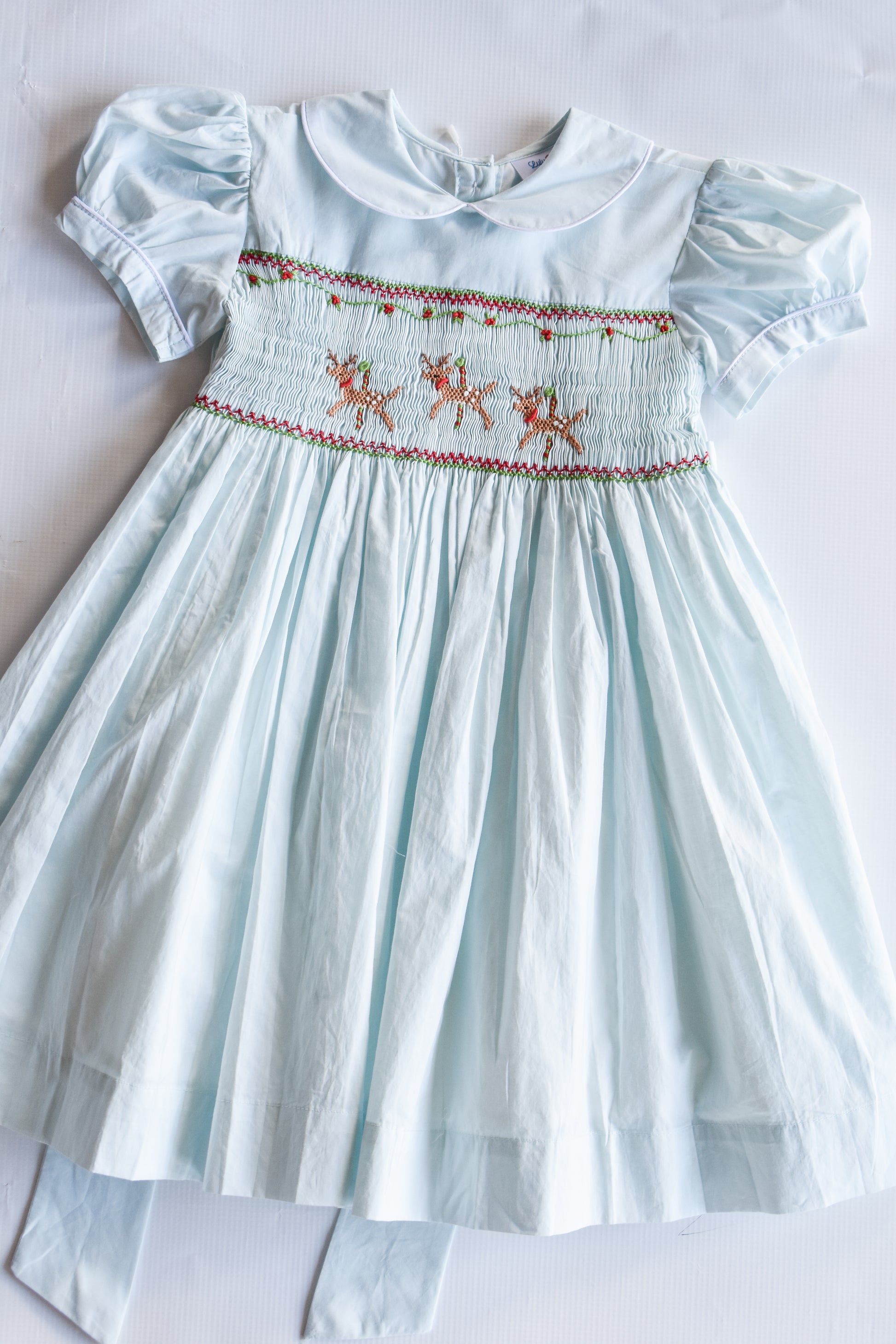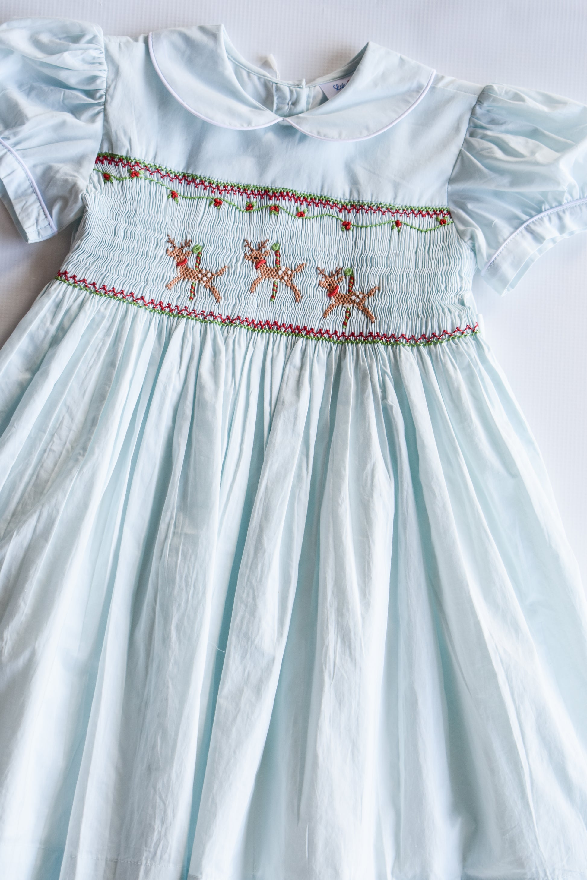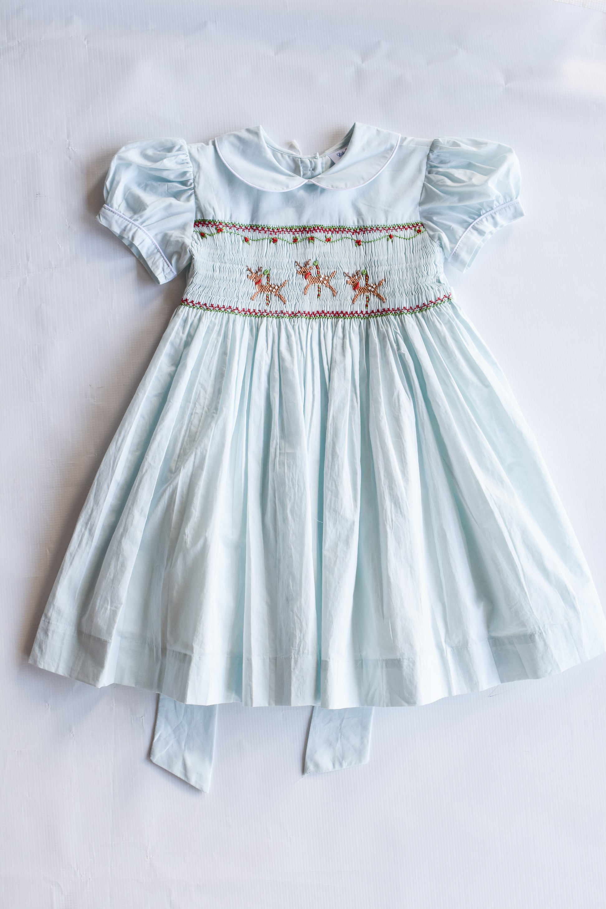 Vintage Wintergreen Reindeer Smocked Tiffany Dress